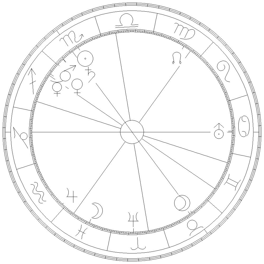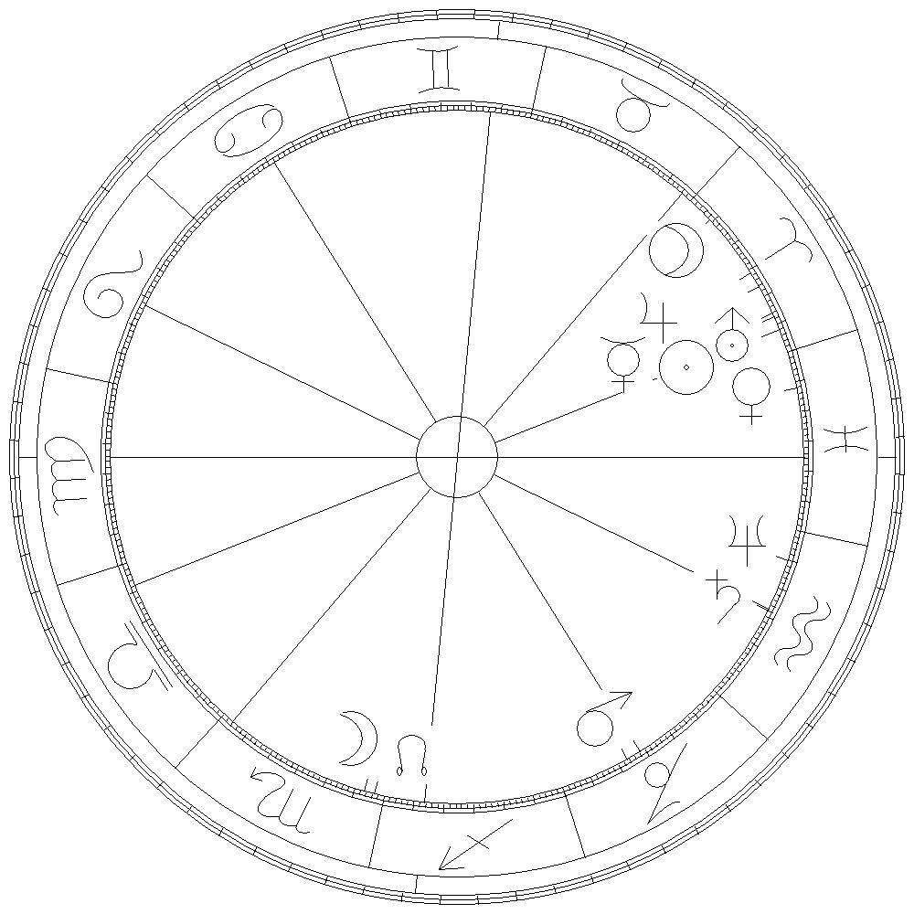 Uranus entspricht sicher der Strahlung und ist, besonders in Verbindung mit Mars und Merkur, ein Hinweis, daß erneut eine Energieform „erfunden“ wird, die als neurotischer Ersatz für blockierten Ursprung fungieren muß, wie wir es bereits vom elektrischen Strom kennen. Weist doch Mars-Merkur als untere Ausübung Neptun-Saturns auf die Lücke von Uranus und Venus hin, die auch tatsächlich als Aspekt aufscheint. Uranus wird als Strahlung funktional und die Venus fällt als zerstörtes Gewebe, bzw. allgemein als Zusammenbruch der Figuration aus. Damit haftet dem Phänomen auch der konkrete Opferungsaspekt von Mars-Merkur an.