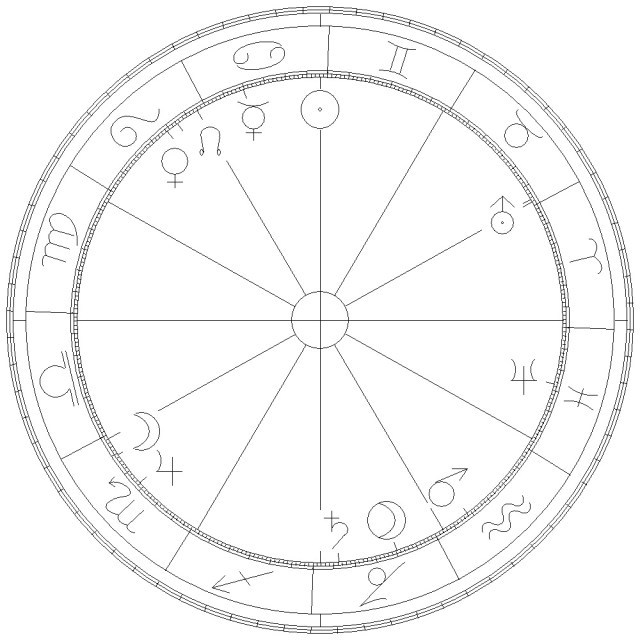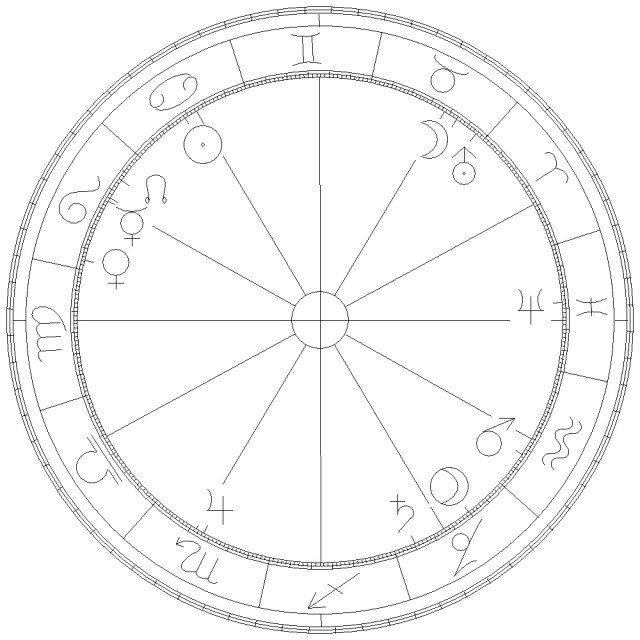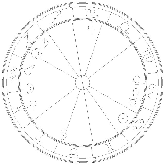 In Opposition zur Sonne steht Saturn im 4. Haus. Er bezeichnet eine asketische Situation, mit Mangel an Licht, Wasser, Nahrung, unter der Trennung von Familie und Freunden leidend, dafür mit Kälte, Enge und Furcht gesegnet.