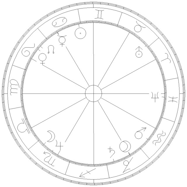Merkur beherrscht nicht nur den AC über die Jungfrau, sondern über den Zwilling ebenso den MC und bestätigt somit auch in der Finalität ein schicksalhaftes Abenteuer. Der Zwillingsmerkur an sich steht für die Erkundung der Umgebung, im Krebs ist es eine Höhle in der Umgebung, an der Spitze des 11. Hauses wird die Erkundung zum Abenteuer. Aszendent und Medium Coeli liegen beide auf Mond-Uranus-Punkten. Darauf werden wir zurückkommen.